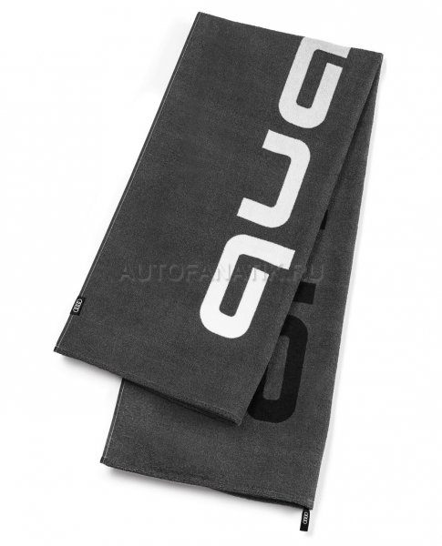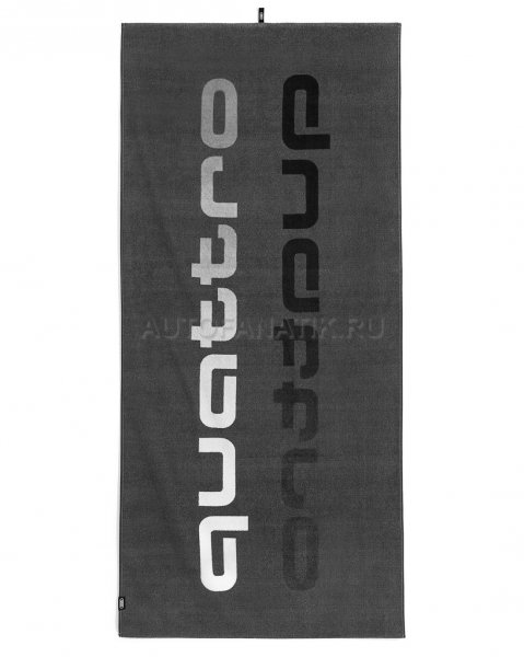Надпись quattro - как крупный цифровой отпечаток. Большая площадь 80 х 180 см - достаточна для отдыха на пляже. Лебл с кольцами Audi пристрочен сбоку на самом полотенце и на текстильном крючке для подвешивания. Производитель - немецкая компания Möve.
