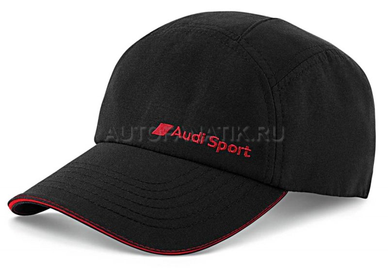 Черная бейсболка с красным кантом на козырьке и красной строчкой. На лицевой стороне - логотип Audi Sport. Размер: унирверсальный (регулируется).