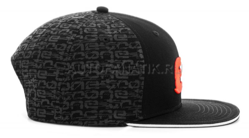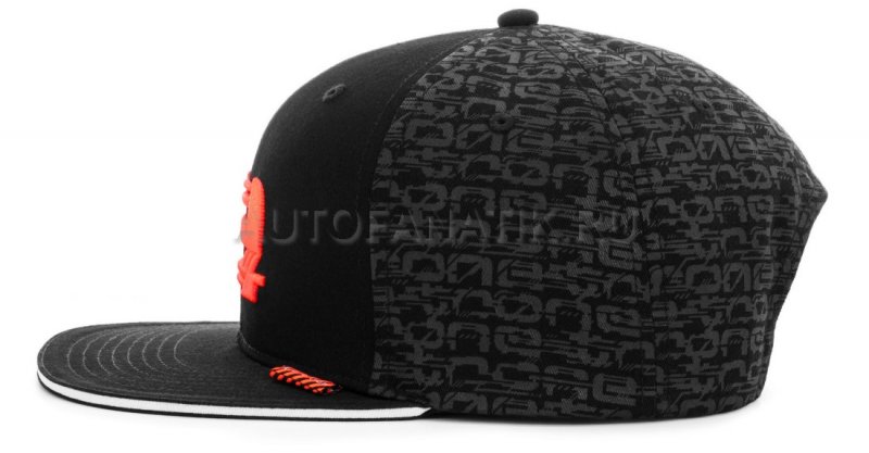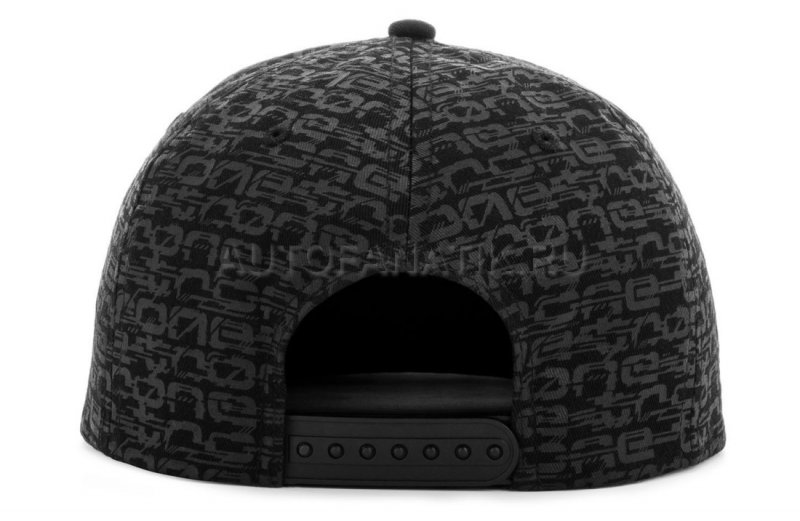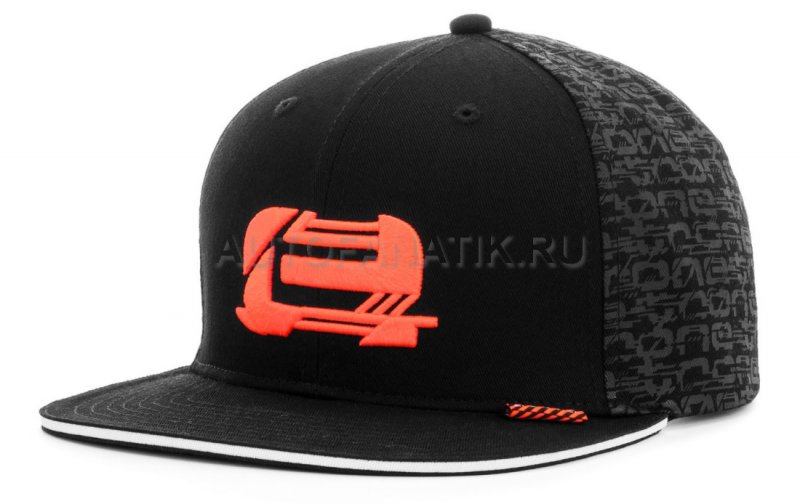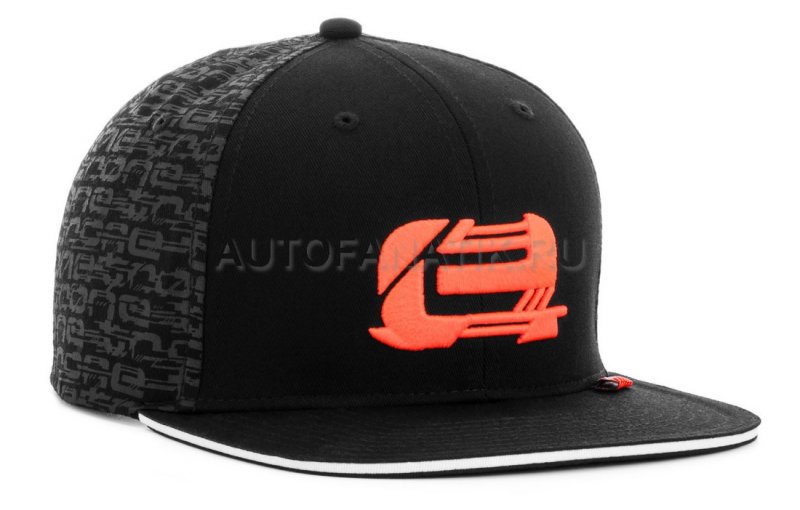 Бейсболка с модным плоским козырьком и классическим пластиковым регулятором размера сзади. Неоновая красная 3D вышивка на передней панели. Задние панели с тонированным принтом Audi e-tron по всей поверхности. Контрастное белое ребро козырька. Один размер, регулируемый (прибл. 55–59 см). Материал 100% хлопок. Цвет: черный.