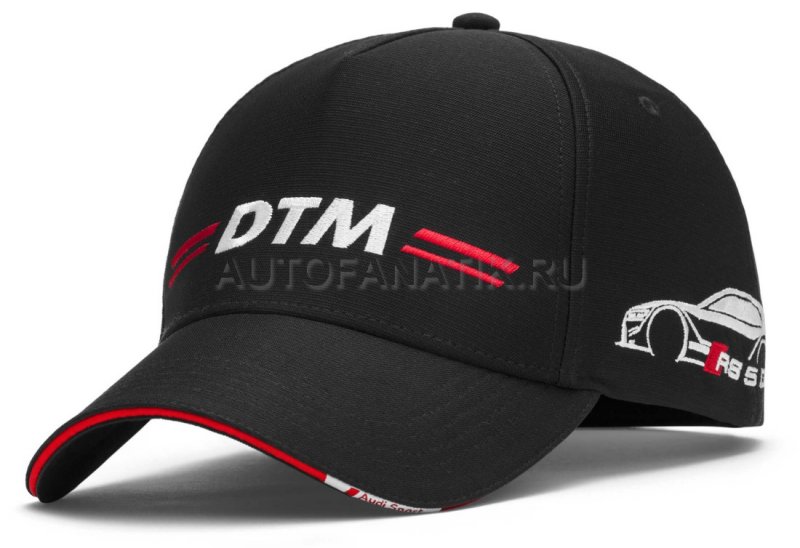 Дизайн из пяти панелей. Белый вышитый логотип DTM и динамичная красная полоса на передней панели. Красное ребро козырька с надписью Audi Sport. Вышитая эмблема RS5 DTM с правой стороны. Логотип Audi Sport с левой стороны. Размер регулируется ремешком сзади с металлической застежкой в черном цвете с рельефными кольцами Audi. Ширина: ок. 55-59 см. Материал: 100% полиэстер.