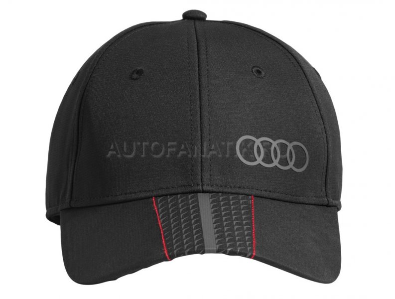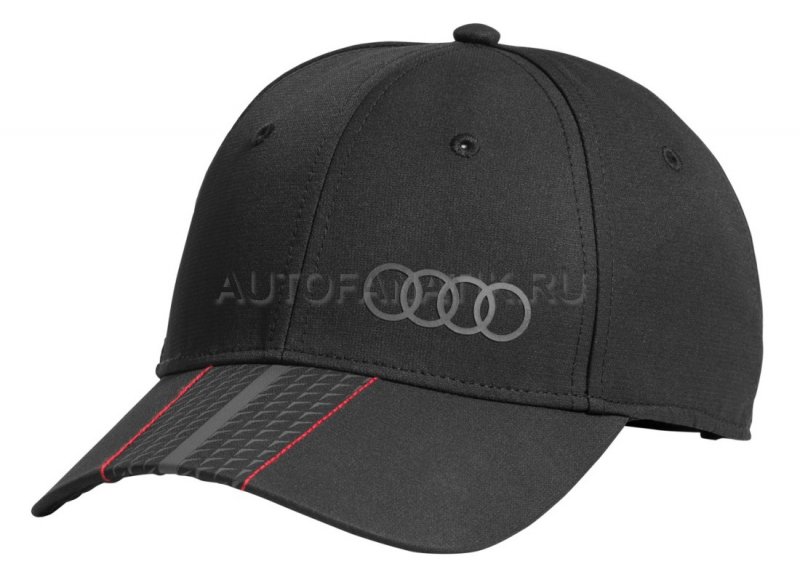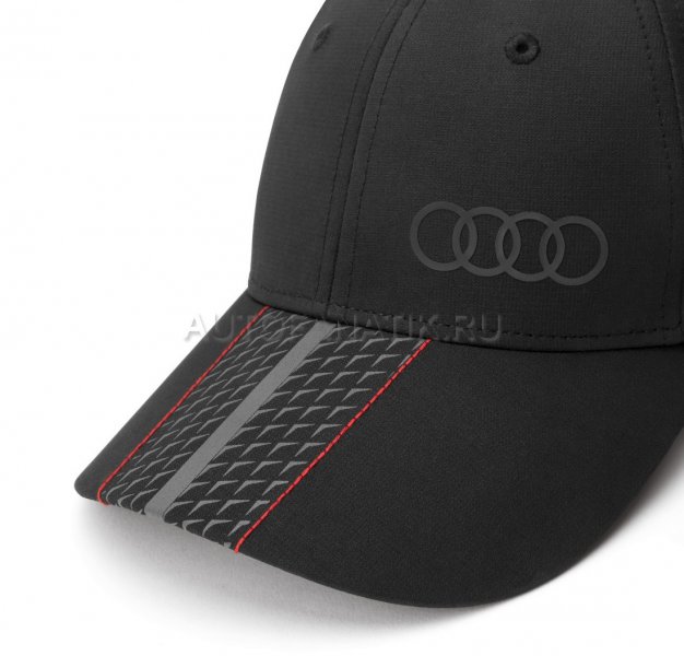 Практичный и модный аксессуар. Кепка с «частотным» принтом и кольцами Audi подойдет как мужчинам, так и женщинам. Дизайн из шести панелей с усиленными передними панелями. Верх границы выполнен из комбинации вышитых красных стеганых полос и серого принта "Frequency".