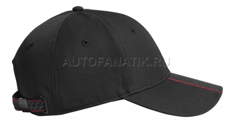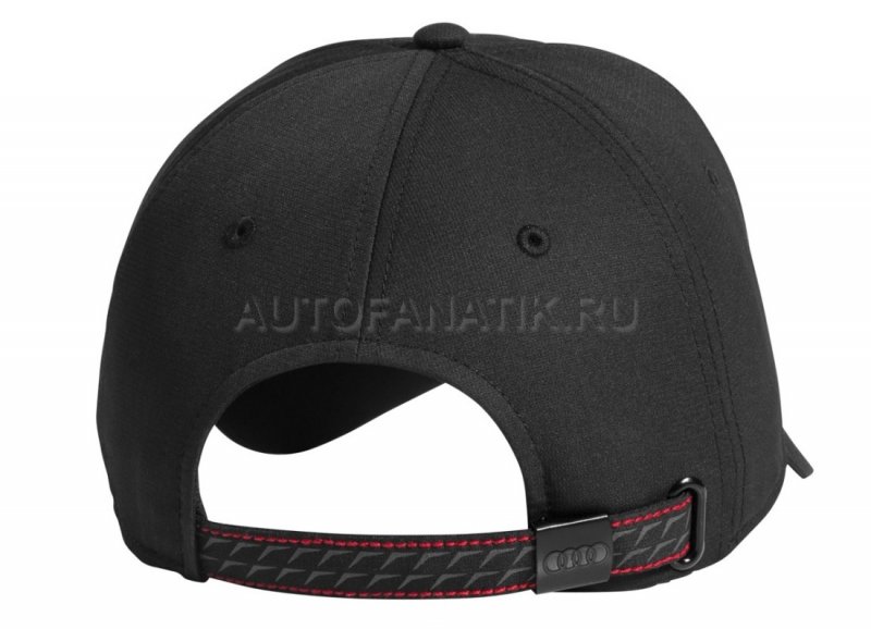 Регулируемый ремешок с серым принтом "Frequency" и красным стеганым швом. Левая передняя панель с силиконовым принтом в форме колец Audi, внутренняя подкладочная лента с кольцами Audi, напечатанными белым, и рельефные кольца Audi на металлическом регулировочном зажиме. Один размер подходит для всех, регулируемый (прибл. 55-59 см). Черный цвет. Материал: 100% полиэстер.