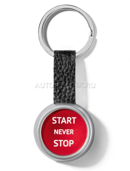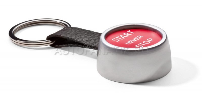 Для полного ощущения нахождения на гоночном треке: брелок в форме кнопки запуска/остановки двигателя Audi R8. C надписью «START NEVER STOP» и гравировкой #LeagueofPerformance. Кнопка реально нажимается. Размеры кнопки: прибл. 3 x 2 см. Материал: литой цинк, кожа, алюминий. Общая длина приблизительно 9 см. Цвет: красно-серебристый.