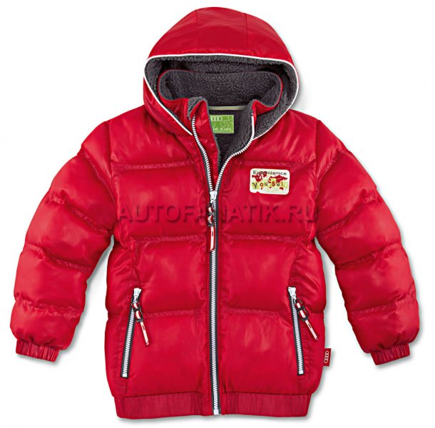 Подкладка куртки из плюшевого флиса, капюшон, карманы на молнии, значок Audi “Experience yourself” на груди. Материал: нейлон/флис. Цвет: красный. Размеры:
