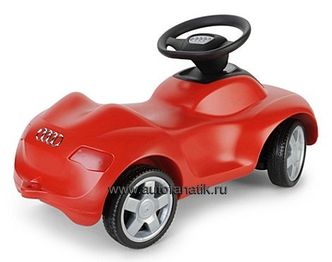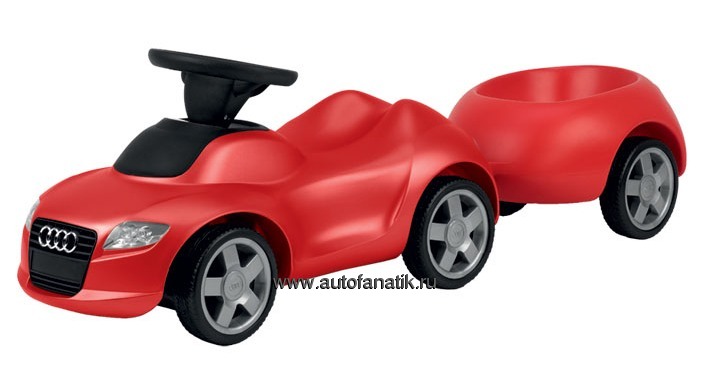Без прав, но с большим увлечением дети в возрасте от 1 года до 3 лет могут использовать этот игрушечный автомобиль. Так как правила дорожного движения в данном случае не действуют, на рулевом колесе автомобиля имеется клаксон. Кроме того, автомобиль оснащен бесшумными шинами и креплением для прицепа. Размеры: 74 x 38 x 30 см. Красный цвет. Внимание! Прицеп к автомобилью в комплект не входит и заказывается отдельно - партномер (артикул): 3200700900