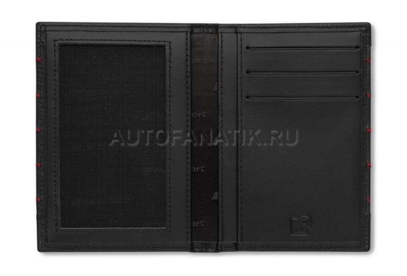Три слота для карт и два больших накладных кармана. Одно сетчатое отделение для водительских прав (приблизительно 7,5 х 11 см). Рельефный логотип Audi Sport спереди. Блокировка RFID. Подкладка с логотипом Audi Sport. Ручная работа. Сделано в Европе. Размеры: 8,7 х 12 х 1 см (в закрытом виде). Материал: натуральная кожа; подкладка: вискоза. Цвета: черный, красный.