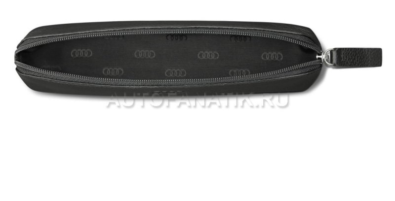 Футляр для письменных принадлежностей Audi. Основное отделение на молнии, вмещает приблизительно 5 ручек. Размеры: 19 x 4,5 x 4 см. Внутренняя подкладка с кольцами Audi. Изготовлен вручную из итальянской натуральной кожи высочайшего качества. Подкладка из вискозы. Цвет: черный.