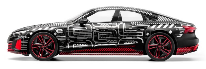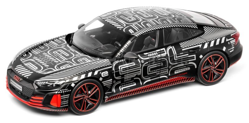 Высокопроизводительное купе в миниатюрном формате: литая под давлением миниатюра прототипа Audi RS e-tron GT с камуфляжными украшениями. Масштаб:: 1:18. Производитель: Norev SAS. Материал: металл. Цвет: черный / красный / серебристый.