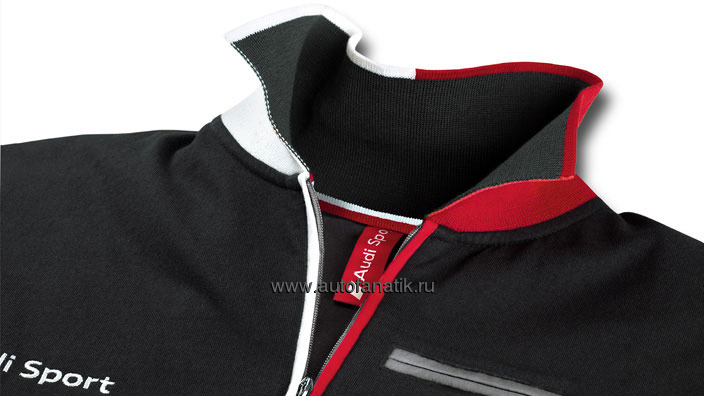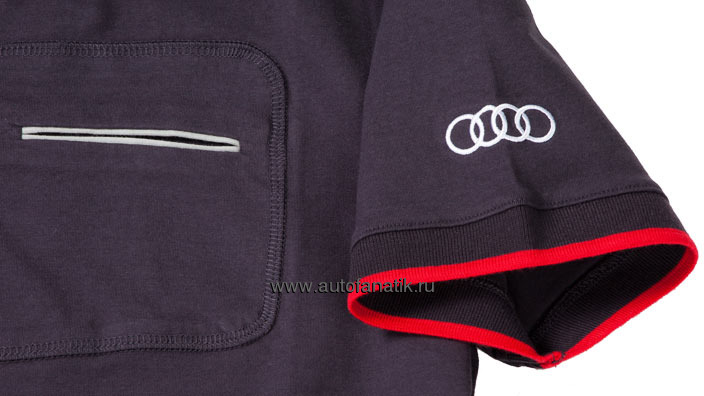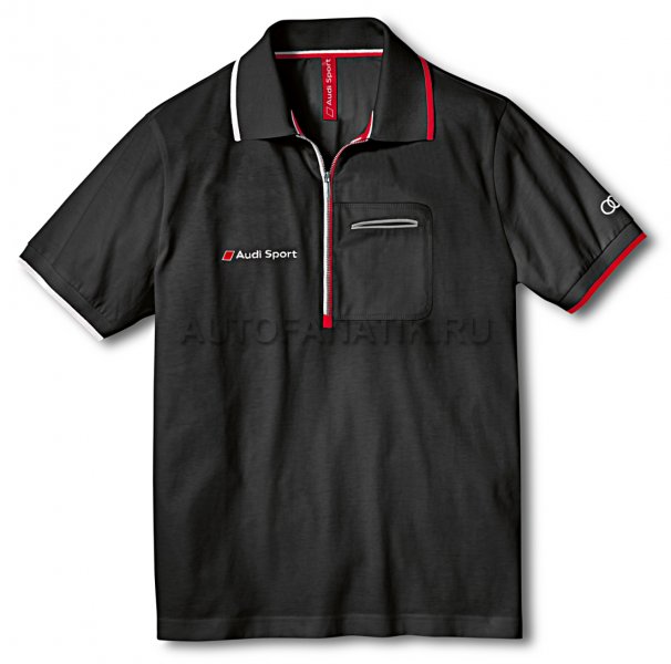 Мужская футболка-поло Audi Sport. Слегка эластичный материал, прямой покрой, 2-цвет- ная застежка-молния, нижняя часть воротника двух контрастных цветов, фирменные знаки – логотип Audi Sport и кольца Audi. Материал: 95% хлопок и 5% эластан.