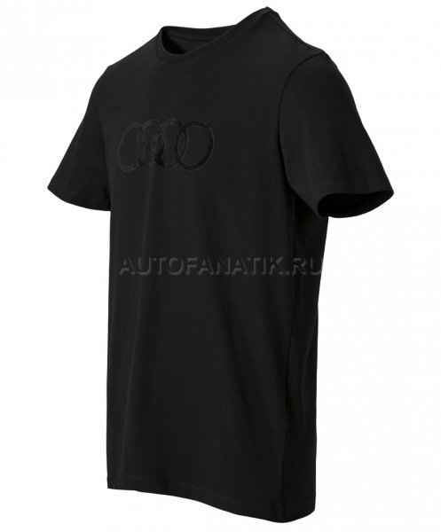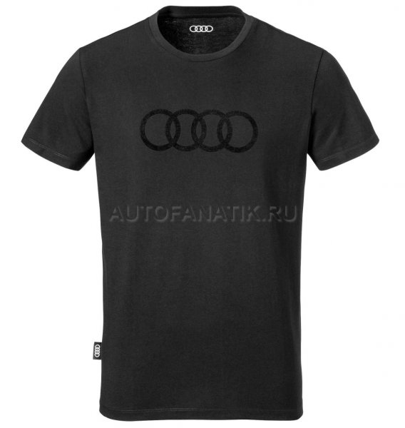 Мужская футболка с коротким рукавом. Классический круглый вырез горловины. На груди крупные фирменные кольца Audi. Материал: 100% хлопок.
