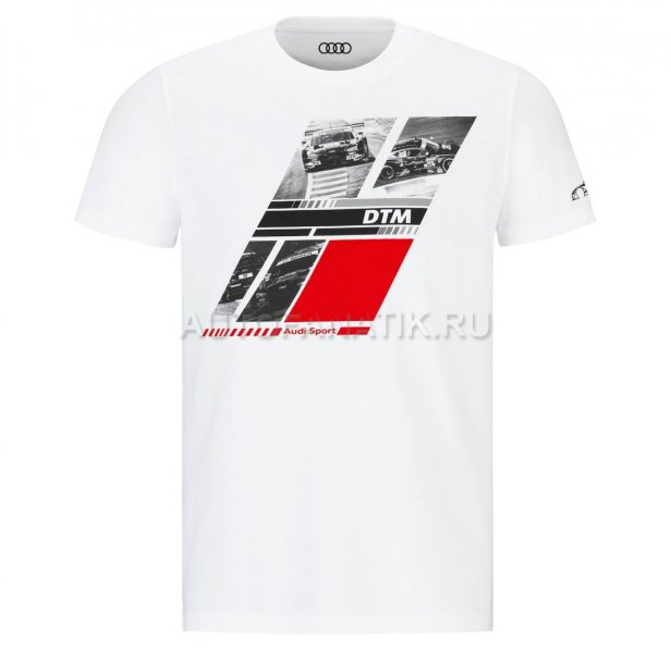 Тематическая футболка Audi Sport DTM для настоящего любителя автоспорта. Короткий рукав, классический круглый вырез. Большой принт спереди с логотипами Audi Sport , DTM и изображениями гоночных Audi RS 5 DTM. Материал: 100% хлопок, трикотаж. Цвет: белый.