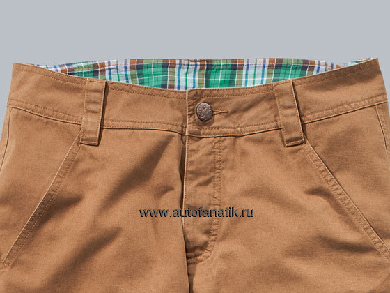 Брюки с втачными карманами спереди и накладными карманами сзади, косой шов с задней стороны, с внутренней стороны пояса и нижней внутренней стороны брючин использован клетчатый материал, 100% хлопок Twill. Стирать при температуре не выше 30С. Совместный продукт с фирмой Maloja.