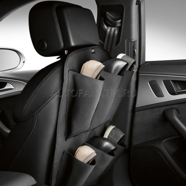 Практичная защита спинки сиденья Вашего Audi от загрязнения и одновременно удобный универсальный органайзер, хорошо подходящий, например, для сменной обуви (до 3-х пар). Защита спинки сиденья легко моется. Цвет: «черный». Примечание: не подходит для автомобилей со встроенными подголовниками.