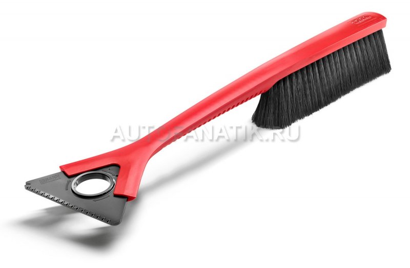 Щетка для уборки снега со скребком для удаления льда. Треугольный скребок вынимается, можно устанавливать разными сторонами - лезвием или зубчатой стороной. На скребке также имеется специальная канавка для очистки резинок дворников от наледи. Рельефные кольца Audi на рукоятке. Произведен компанией Kungs по заказу Audi. Производство: Финляндия.