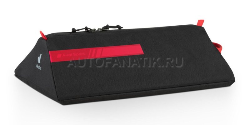 Красная ручка для переноски. Большой карман на молнии. Небольшой дополнительный карман на молнии снаружи. Красная полоска с логотипом Audi Sport на передней части сумки, кольца Audi в качестве фирменного знака. Логотип Deuter на боковой стороне сумки. Размеры: 41 x 24 x 10 см., - доостаточно, например, для пары обуви 47-го размера