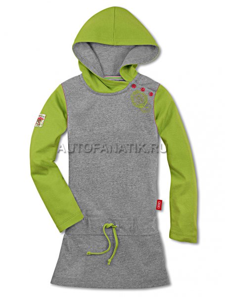 Длиный свитер для девочек, с рукавами и капюшоном в контрастном зеленом цвете, значок Audi “Experience the world”. Материал: хлопок/полиэстер. Цвет: серый. Размеры: