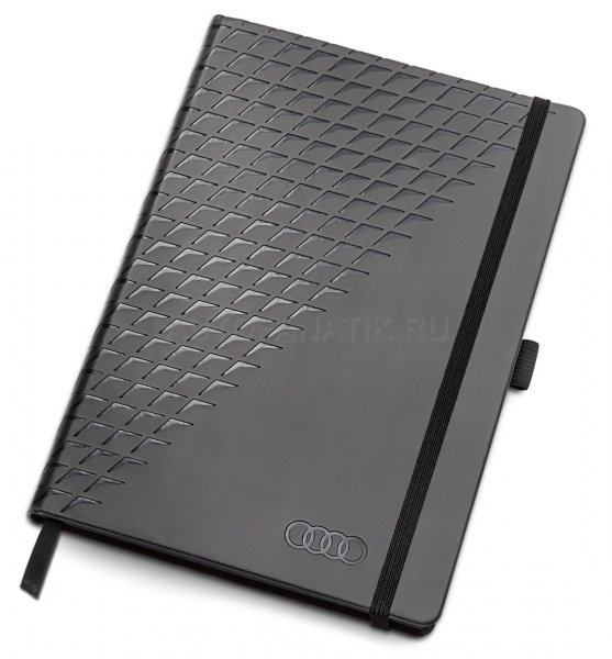 Записная книжка формата A5 из высококачественного полиуретана с тиснением "Frequency" (тиснение как на сиденьях автомобилей Audi). Бумага 80 г, 192 листа, нелинованная, пластиковый замок, ляссе, карман для визитных карт.