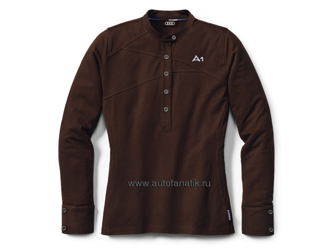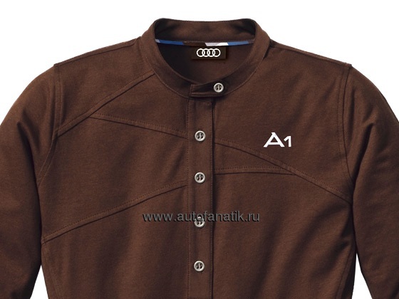 С воротником-стойкой, планкой с пуговицами и манжетами. Выгравированные на серебристых металлических пуговицах кольца Audi. Материал: 95% хлопок, 5% лайкра.