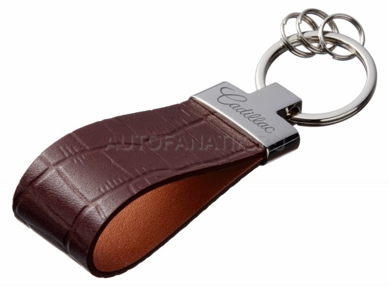 Элегантный брелок Cadillac с петлей из высококачественной натуральной телячьей кожи, с тиснением под крокодиловую кожу. Основание брелока сделано из металла с лазерной гравировкой логотипа. Ширина кожаной петли: 27 мм., длина брелока без кольца: 80 мм., длина с кольцом: 110 мм. Цвет петли: коричневый. Поставляется в черной подарочной коробке с логотипом Cadillac.