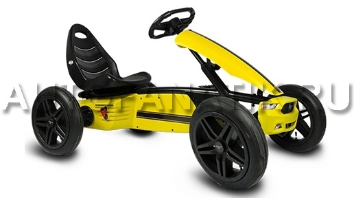 Früht übt sich, wer ein echter Asphaltcowboy werden will: Mit dem Ford Mustang Pedal Go-Kart in klassischer gelber Lackierung mit schwarzem Streifen lernen 4 bis 12jährige, in die Pedale zu treten – und zwar vorwärts und rückwärts. Die Weichen für das spätere Traumauto werden nebenbei natürlich auch gestellt! Sitz und Lenkrad sind verstellbar und passen sich an die Körpergröße an, so dass der kleine Mustang ein Geschenk ist, das viele Jahre Freude bringt...