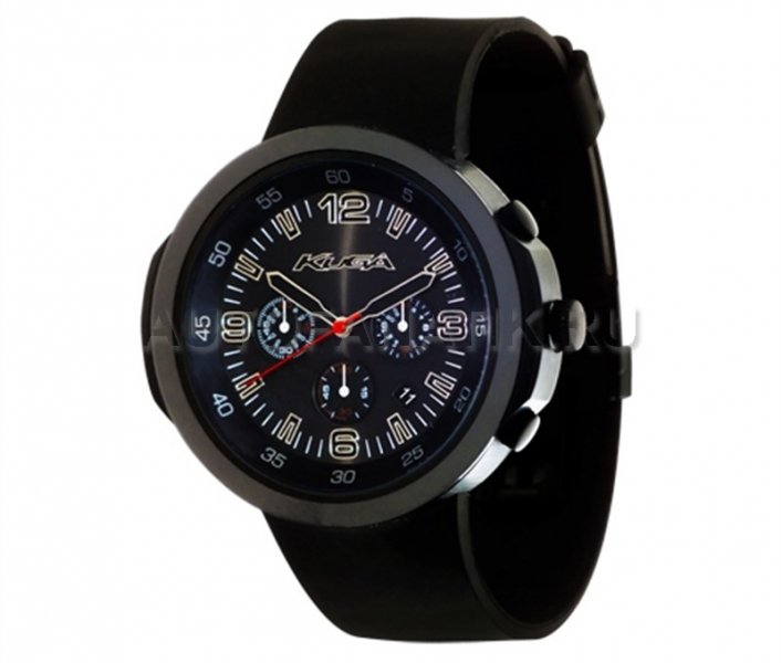 Логотип Ford Kuga в виде гравировки на стильном темно-сером циферблате. Подходящий элегантный черный силиконовый ремешок впечатляет. Все это делает хронограф Ford Kuga настоящим предметом внимания. Водонепроницаемость до 3 метров. Поставляется в подарочной упаковке.