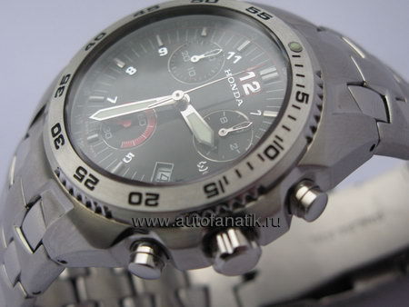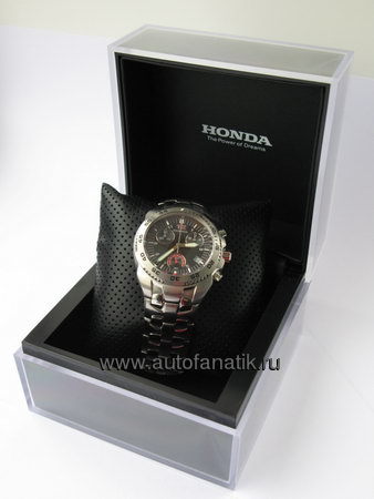 Ограниченная серия. Высококлассный хронограф в корпусе из нержавеющей стали. Люминесцентное покрытие стрелок. Водостойкость 50м. Логотип Honda с тиснением на пряжке ремешка. Поставляется в стильной подарочной коробке.