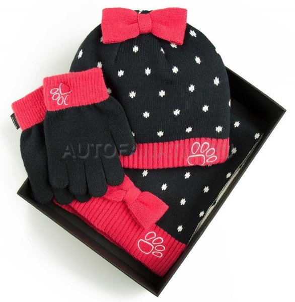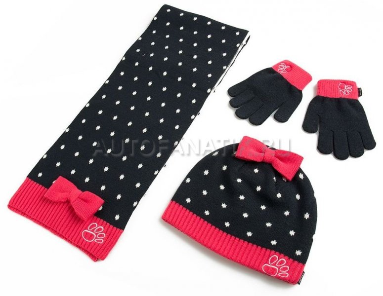 Набор для юной леди: шапка, шарф и перчатки. Один размер. Оригинальные рисунки и узоры, яркая расцветка - гарантируют отличное настроение в зимних путешествиях! Сделаны из искуственной шерсти (акрилл). Набор поставляется в подарочной коробке. Основные цвета: темно-синий и розовый. Артикул: 51JDGF812NVA