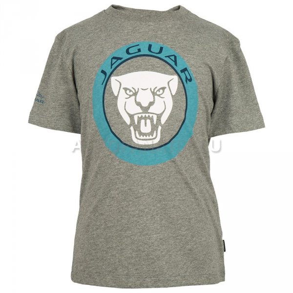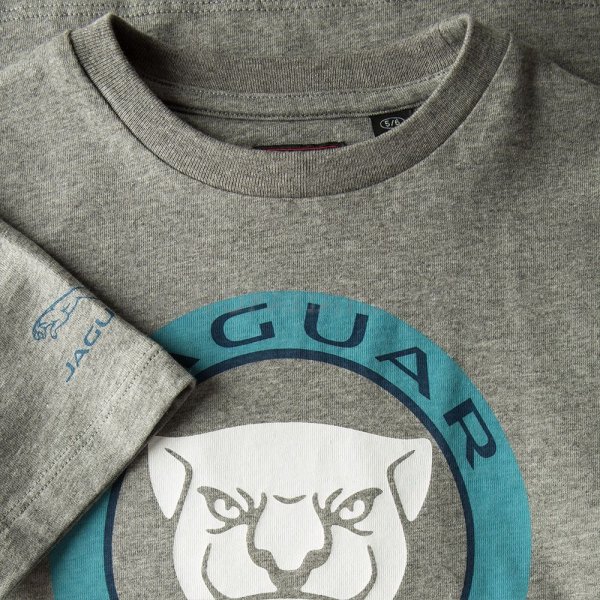 Футболка "Рычащий ягуар", из 100% хлопка с крупной эмблемой бренда на груди и круглым воротом. Надпись Jaguar на рукаве и ярлычке, расположенном снизу на боковом шве. Все размеры на возраст от 2 до 10 лет.