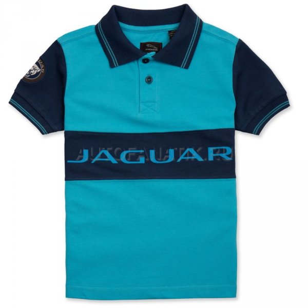 Рубашка-поло с контрастной полосой, для мальчиков. Дизайн на все времена — детская рубашка-поло с широкой контрастной полосой в цвет рукавов и гармоничной цветовой комбинацией. Изготовлена из стопроцентного хлопка пике. На рукаве — нашивка с эмблемой бренда, спереди — крупная надпись Jaguar.