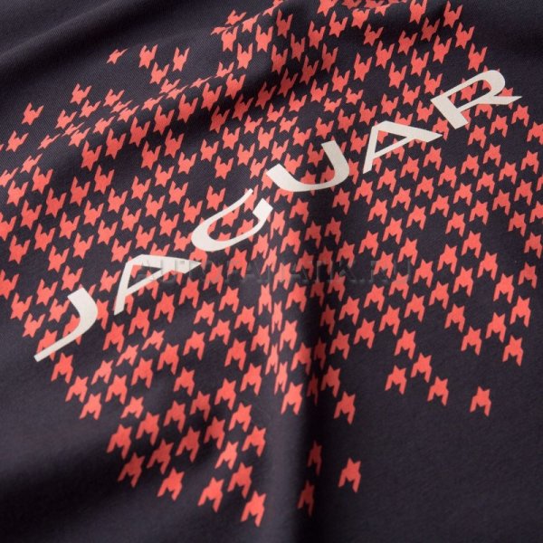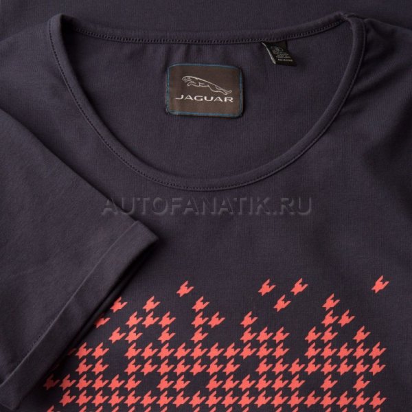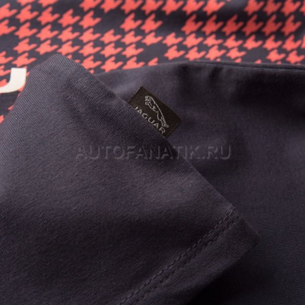 Мягкая, приятная на ощупь футболка из 95% хлопка и 5% эластана с современной версией классического узора «гусиные лапки». Крупная надпись Jaguar спереди. Глубокий вырез. Приталенная.