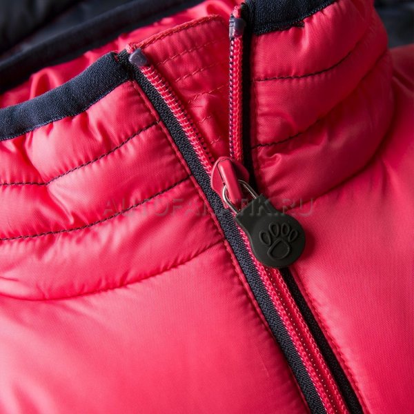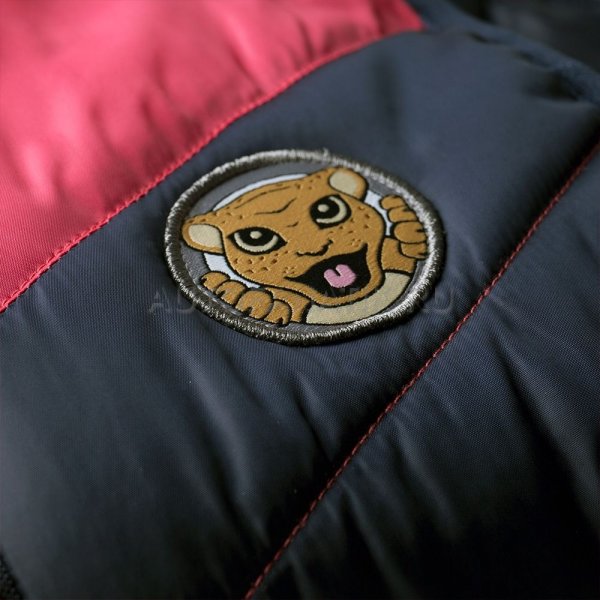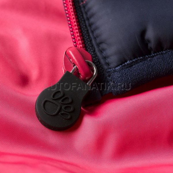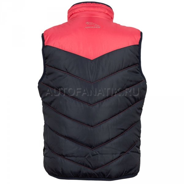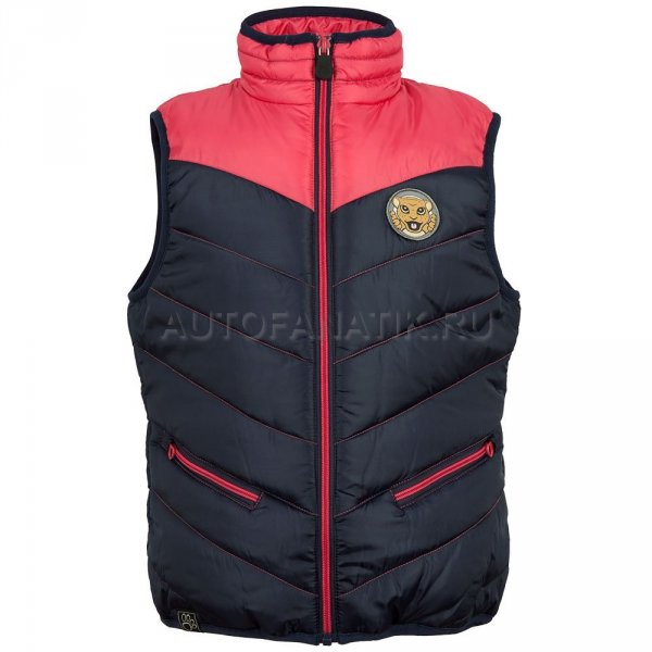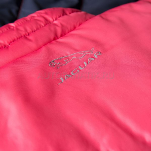 Тёмно-синий жилет с нашивкой с изображением маленького ягуара. На спине — логотип Jaguar, выполненный светоотражающей краской. На брелоке молнии оригинальный рисунок в виде отпечатка лапки маленького ягуара. Материал: 100% полиэстер.