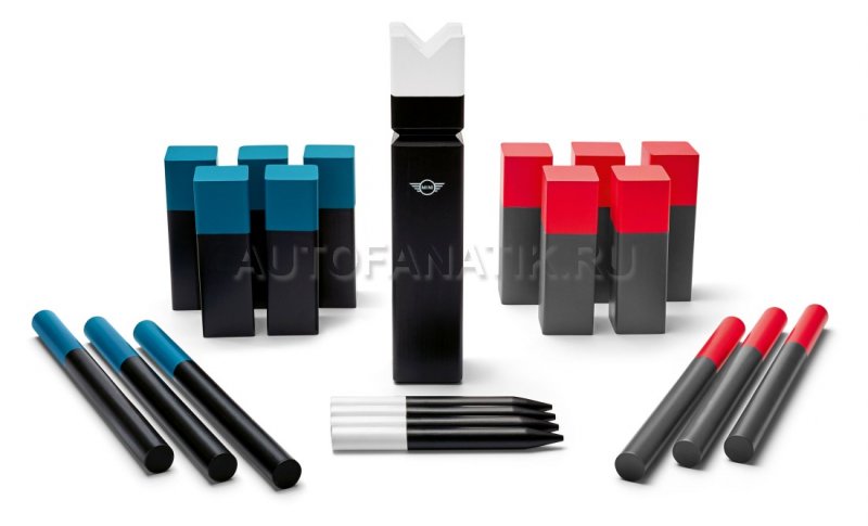 Игра MINI Kubb (также известная как «Шахматы викингов») - это классическая игра для всей семьи. Она состоит из ярких цветных фигур и короля с напечатанным логотипом MINI Wing. Игра упакована в черный хлопчатобумажный мешок со шнурком. Игра состоит из 21 предмета, сделанных из натурального дерева: 1 король, 10 куббсов, 6 метательных палочек и 4 ставки. Размеры: 33 x 8 x 20,5 см.