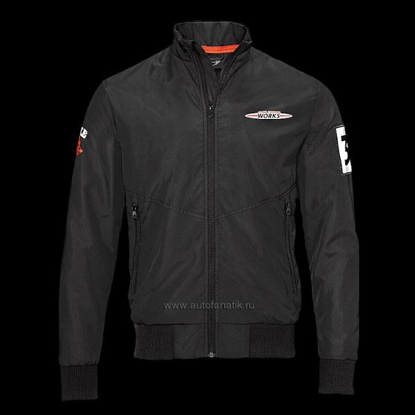 Куртка с воротником-стойкой, печатными и вышитыми спортивными аппликациями на рукавах. Специально прошитая плечевая часть обеспечивает особенно спортивный вид. Эмблема John Cooper Works на груди. Подкладка из сетчатого материала типичного для John Cooper Works красного цвета. Резинки в рубчик на манжетах и по низу куртки из хлопка/эластана. Материал: 100% нейлон. Размеры: