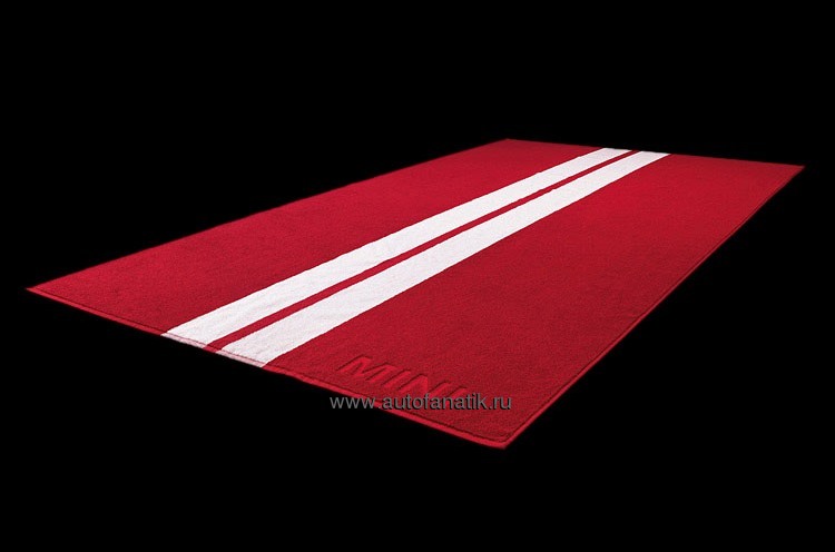 Отличное пляжное полотенце, красное с белыми гоночными полосами, надпись MINI углубленная/приподнятая. Размеры: 180 см x 100 см. 100 % хлопок. Артикул: 80 23 2 163 470