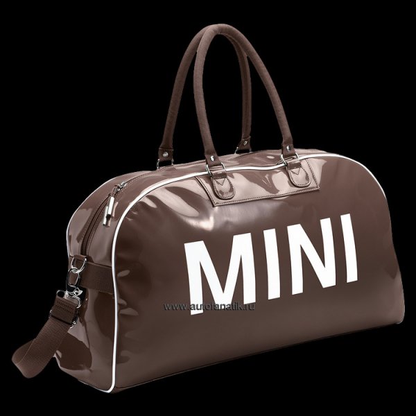 Большая сумка в ретро-стиле с контрастными кантами и надписью MINI на обеих сторонах. Внутреннее отделение с молнией, красной подкладкой и съемным дном для усиления. Съемный наплечный ремень, две ручки. Материал верха: пластик, материал внутри: нейлон. Размеры: 59 см х 17 см х 33 см. Артикул: 80 22 2 294 749