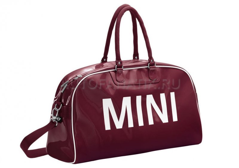 В ретростиле с надписью "MINI" на обеих сторонах. С подкладкой красного цвета. Застегивается на молнию. Со съемным наплечным ремнем. Размер: 59 см х 17 см х 33 см. Цвет: бордовый. Артикул: 80 22 2 287 994