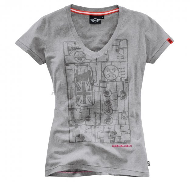 Футболка с V-образным вырезом горловины и подчеркивающим фигуру силуэтом. Принт с изображением набора комплектующих для MINI с 3D-эффектом. Узкий покрой. 96% хлопок, 4% эластан. Цвет: серый меланжевый.