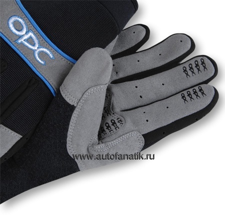Стильные перчатки с логотипом ОРС из флисового материала с регулируемым ремешком. Цвет: комбинация черного и серого.