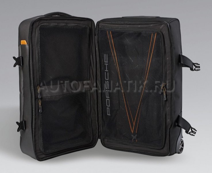 Основное отделение с передним карманом и удобным разделением на три отсека: большой отсек слева и два отдельных малых отсека справа. Эластичные перекрестные ремни и сетчатое покрытие внутри отделений чемодана. Двухходовая застежка-молния по всему периметру и кодовый замок [стандарт TSA] на основном отделении. Передняя ручка для удобной погрузки и выгрузки. Подходит для всех современных моделей автомобилей Porsche. В комплекте с буклетом о серии Metropolitan и с информацией по уходу.