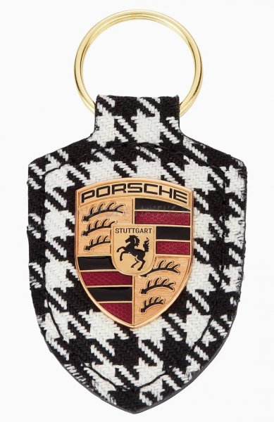 Герб Porsche - безошибочное заявление о спортивном автомобиле для вашего ключа! Брелок для ключей с кольцом и гербом Porsche из оригинальной ткани Porsche Pepita.