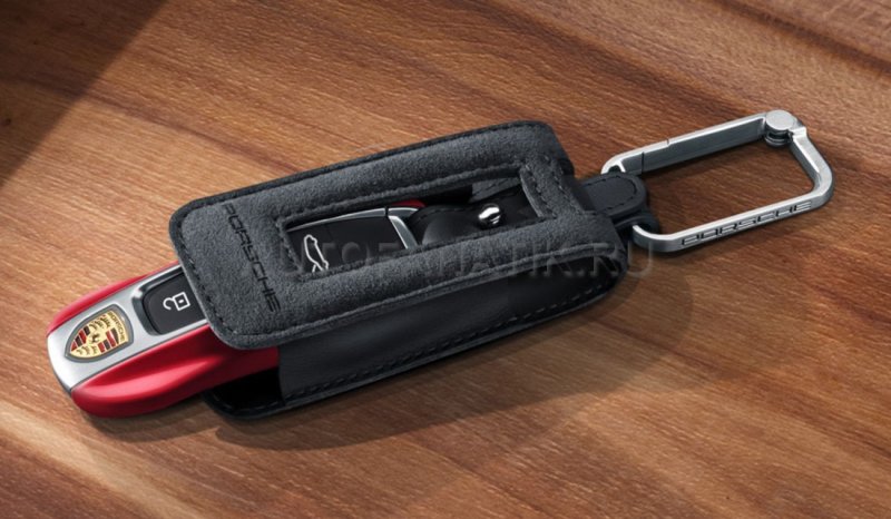Высококачественный оригинальный чехол из алькантара в черном цвете, с тисненой надписью Porsche и декоративной строчкой в разных цветах (черная, серая, красная). Рельефный стальной карабин с глубоко гравированной надписью Porsche. Подходит для ключей 911/Panamera/Cayenne/Taycan (кузова 992, G2, G2 II, E3, J1). Производство: Германия.