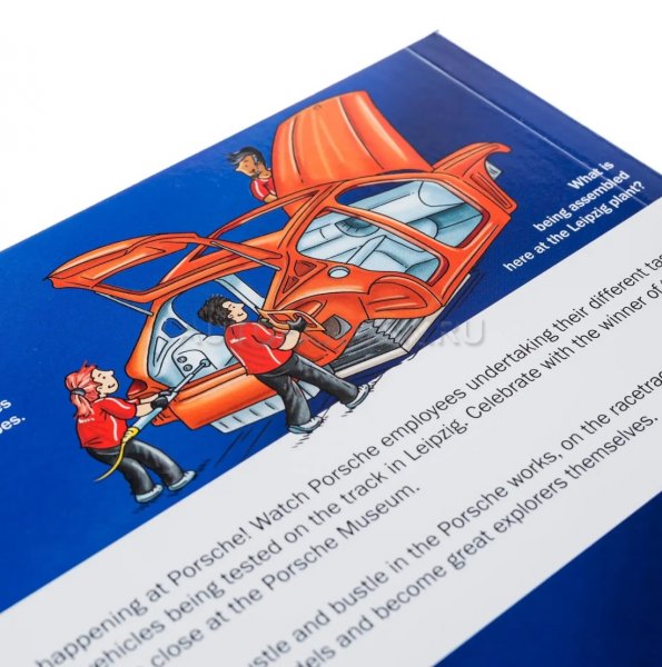 Отправляйтесь в увлекательное приключение, разглядывая детализированную детскую книжку, посвященную легендарному бренду Porsche!