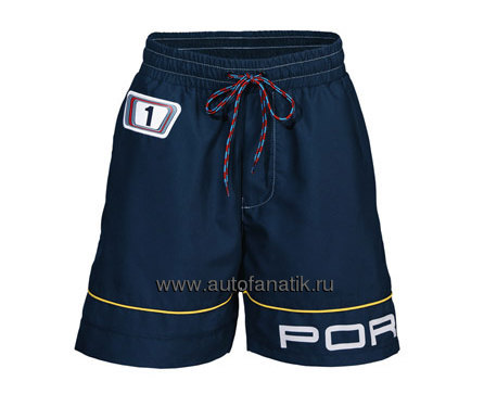 Купальные шорты для мальчиков. В стиле купальных шорт для мужчин Мартини Рэйсинг. С задним карманом. Поясок с полосками. Различные нашивки Рэйсинг. Канты контрастного цвета с дополнительной надписью Porsche вдоль левой ноги. 100% полиэстер. В синем цвете.