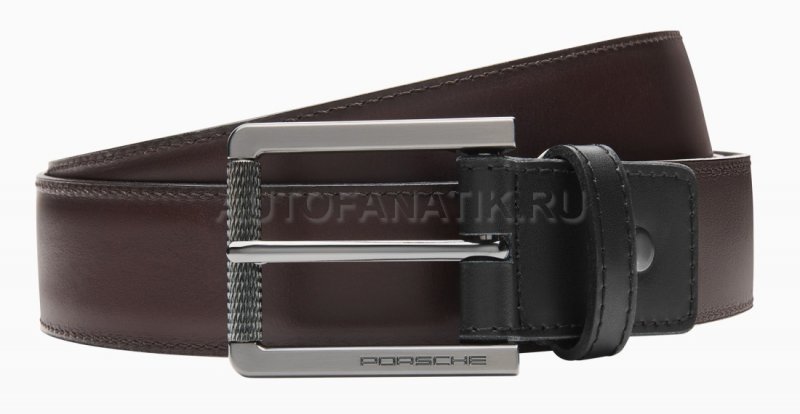Двусторонний ремень из натуральной 100% кожи, подходит как мужчинам, так и женщинам. Ремень можно носить как с коричневой, так и с черной стороны, при этом длина ремня составляет 140 сантиметров (можно укоротить). На пряжке логотип PORSCHE. Ремень поставляется в красивой подарочной упаковке. Сделано в Германии.