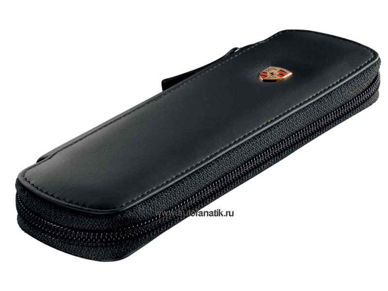Сделан из оригинальной кожи, применяемой в отделке салонов автомобилей Porsche. Закрывается на молнию. На лицевой части - металлический греб Porsche. Размеры: 17 x 4,5 x 2,5 см. WAP 030 009 0C