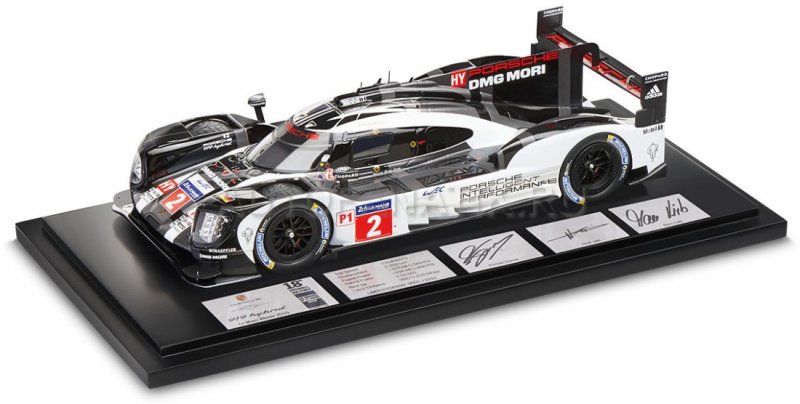 Подробная коллекционная модель болида Porsche 919 Hybrid, одержавшего победу в гонке 24 часа Ле-Мана в 2016 году. На пластиковом подиуме таблички с подписями пилотов: Ромена Дюма, Нила Яни и Марка Либа. Масштаб 1:18. Ограниченная серия: будет выпущено всего 2016 экземпляров.