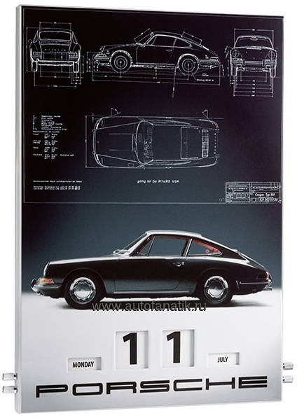 Выпуск ограничен 2013 экземплярами. С изображением технического чертежа автомобиля Porsche 1963 года выпуска, а также фотографией автомобиля идентичной конструкции. Вечный календарь. Размеры: 43,5 x 33,5 x 2,5 см. Артикул: WAP 092 002 0E