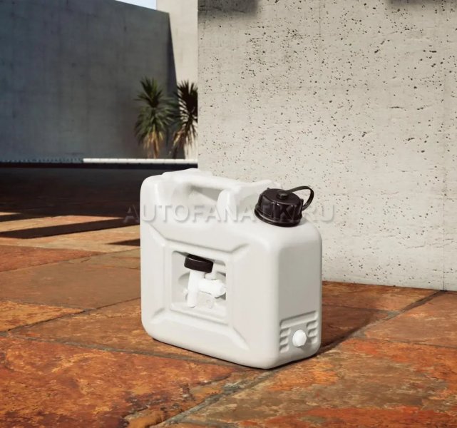 Во время движения канистра с водой крепится к багажнику на крыше. Для этого имеется отдельно приобретаемое крепление для канистры (артикул: 99204401283) с легко открывающейся застежкой. Кронштейн изготовлен из прочного листового металла и защищен от атмосферных воздействий и окисления прочным матово-черным порошковым покрытием. Материал: пищевой пластик. Цвет: серый. Объем: 12 литров.