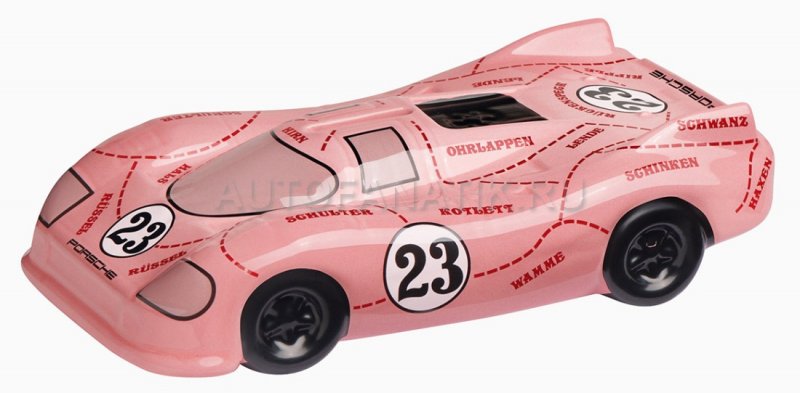 Дизайн, вдохновленный легендарным гоночным болидом «Розовая Свинья» Porsche 917/20 1971 года. Копилка изящно украшена запирающимся отверстием для извлечения монет. Материал: керамика.
