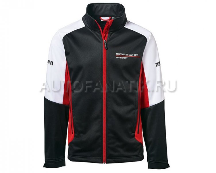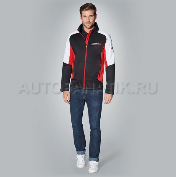 Легкая мужская спортивная куртка со светоотражающими элементами - именно такие носят члены команды "Porsche Motorsport". Дышащий и быстросохнущий материал. Внутри имеется специальный ремешок-держатель для берушей или очков. Материал: 100% полиэстер. Цветовая комбинация: черный/белый/красный.